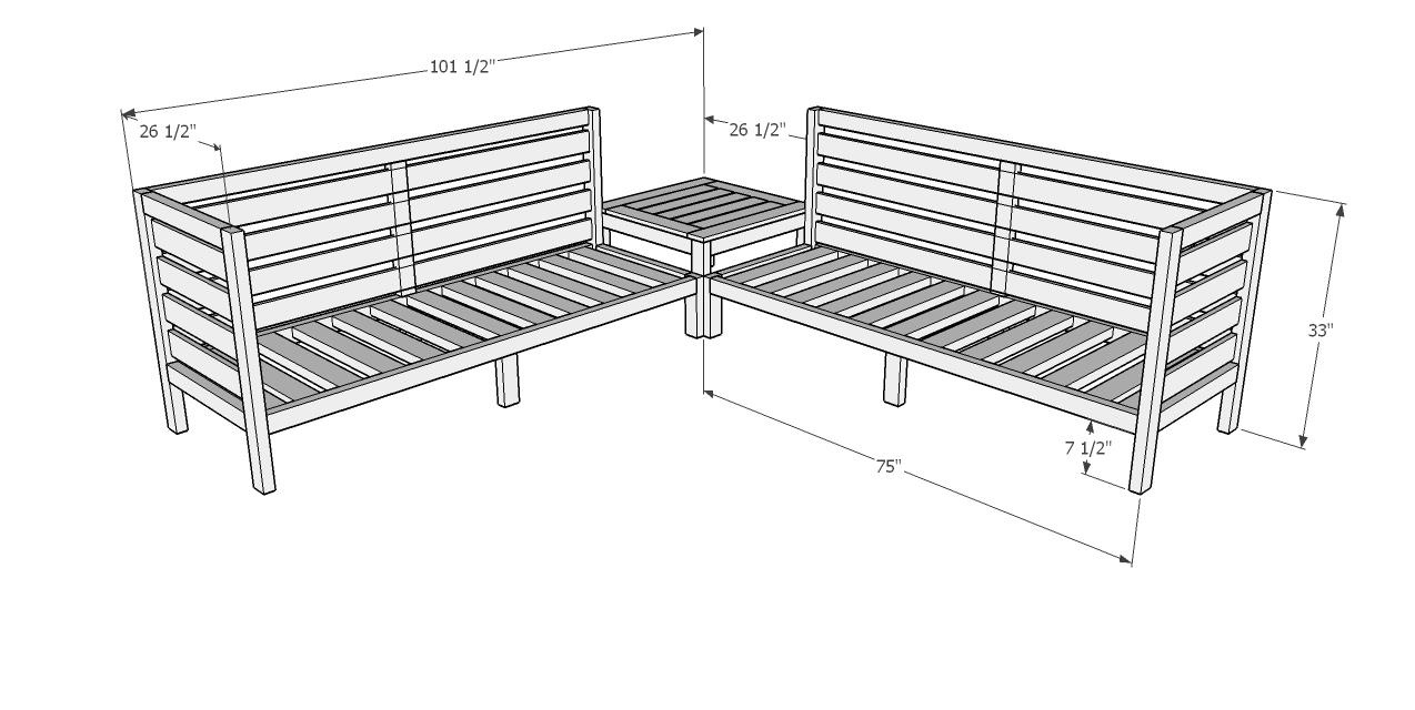 Outdoor Sofa with Corner Table Plans | DIY Patio Lounge Set PDF